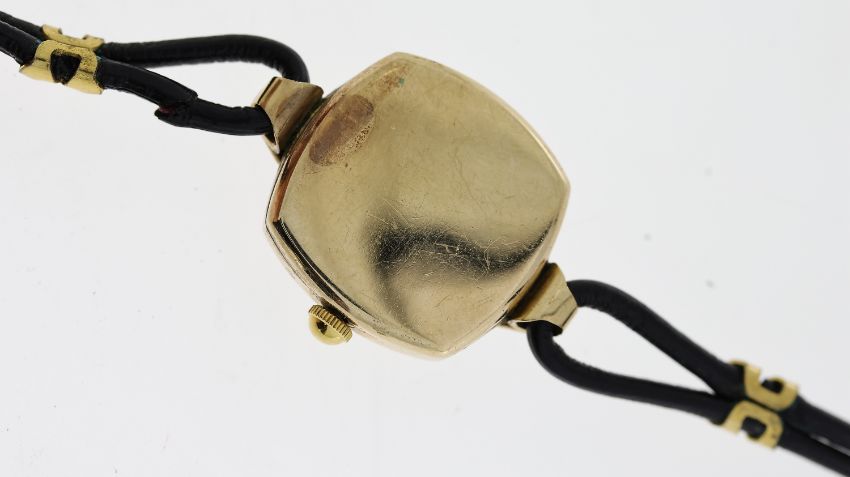 9CT ROLEX CASE, converted from a manual wind to a quartz movement, inner case back hallmarked 9ct, signed R.W.C LTD, rolex dial, approx 22mm 9ct gold case, not running.