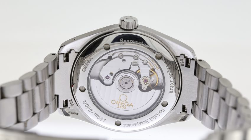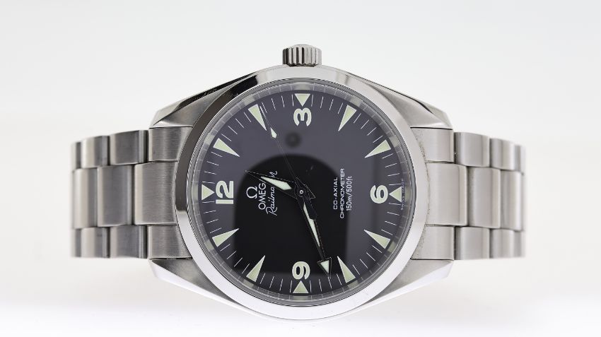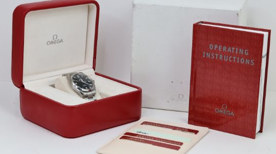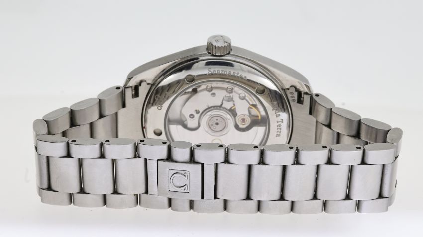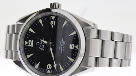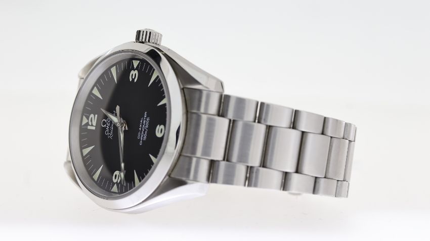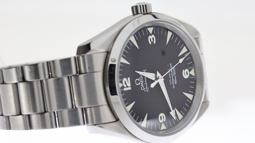 RARE OMEGA RAILMASTER 39 CO-AXIAL BOX AND PAPERS 2004 REFERENCE 2503.52.00, circular black dial with dagger and arabic numeral hour markers, approx 39mm stainless steel case, Omega screw down crown, Omega stainless steel bracelet with a hidden clasp, screw down display case back, Omega calibre 2403 co-axial automatic movement, in sealed condition from new, 27 jewels, comes with a great collectors set, Omega inner and outer box, instructions book, all three cards including the international warranty dated 2004, chronometer certificate and the pictogram card, spare links, comes with an Ebay authenticity guarantee dated 2022, currently running.