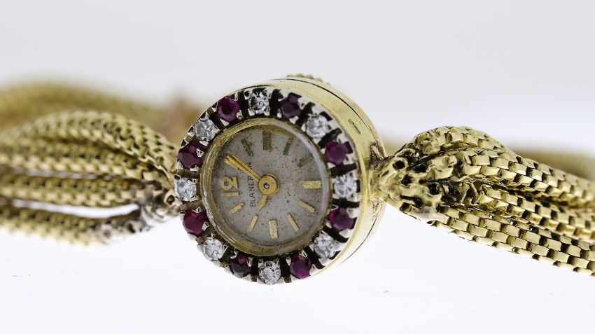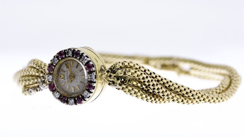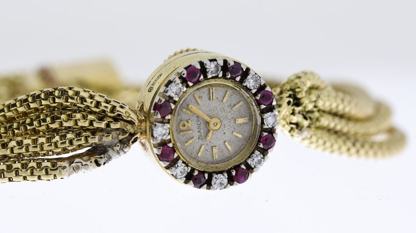 18CT BLANCPAIN JEWELLED MECHANICAL WRISTWATCH, approx 13mm case, hallmarked 18ct, evidence of a repair to the bracelet, back manual wind, comes with a period correct box, currently running.